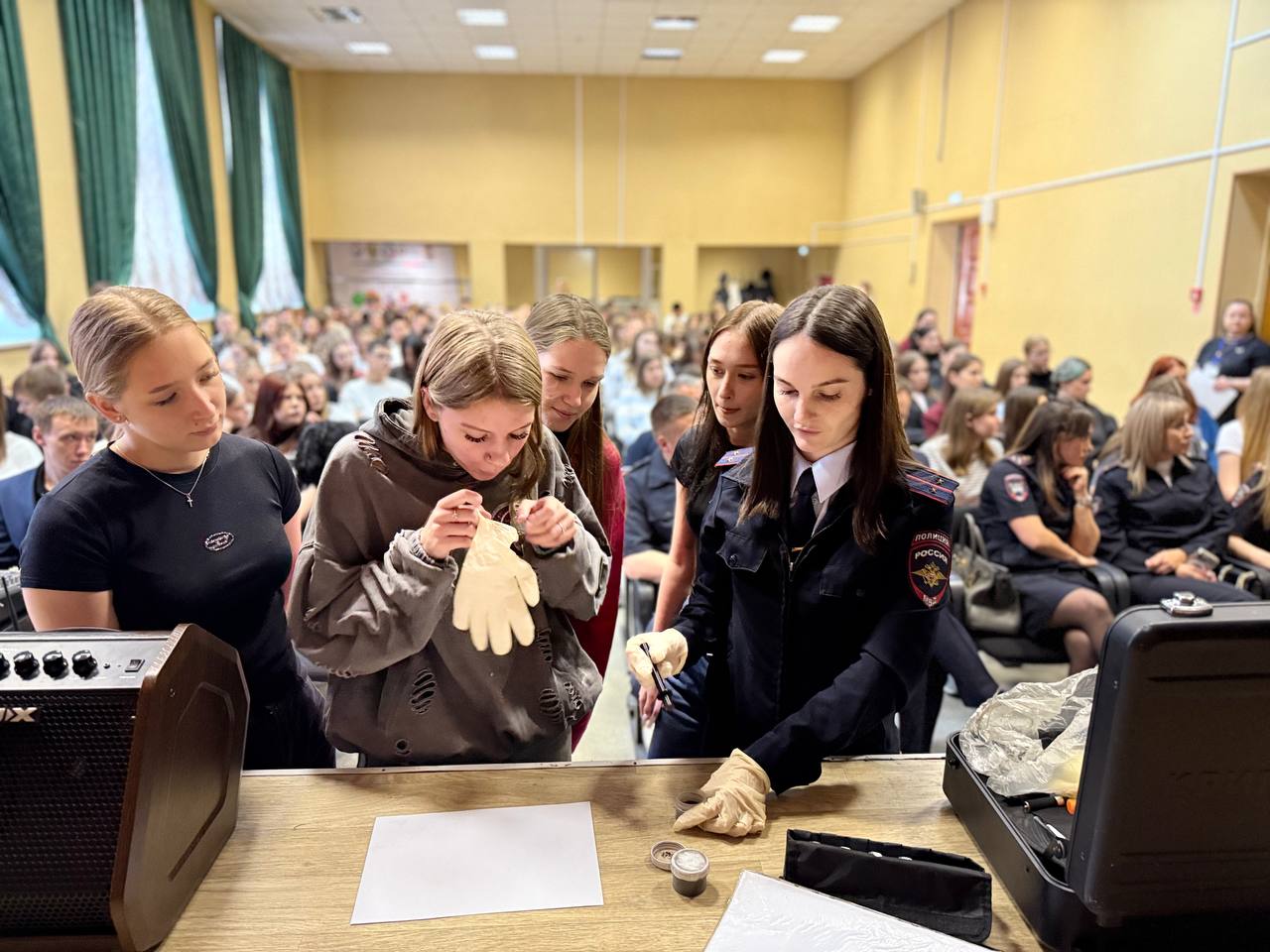 Будущие юристы услышали, как сыщикам удаётся выйти на след злоумышленника и задержать его, а следователям и дознавателям — расследовать уголовные дела и в соответствии с законом наказывать виновных; с каким профессиональным набором инструментов выезжают эксперты на место преступления и как осуществляют поиск и сбор следов; о сложной и порой опасной работе сотрудников Госавтоинспекции. Полицейские рассказали юношам и девушкам об особенностях службы в органах внутренних дел, познакомили с порядком поступления в высшие учебные заведения МВД России и организацией учебного процесса. Ребята узнали, что при отборе кандидатов на службу в органы внутренних дел особое внимание уделяется моральным качествам, состоянию здоровья и физической подготовке.