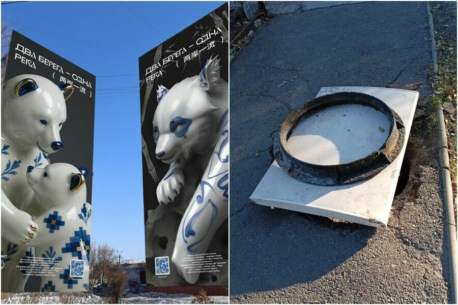 В Благовещенске в районе дома на улице Калинина, где недавно завершились работы по нанесению двух огромных муралов, оказался поврежден люк колодца водоотведения. По словам жителей, это произошло еще в середине лета, когда шла активная подготовка к созданию изображений.