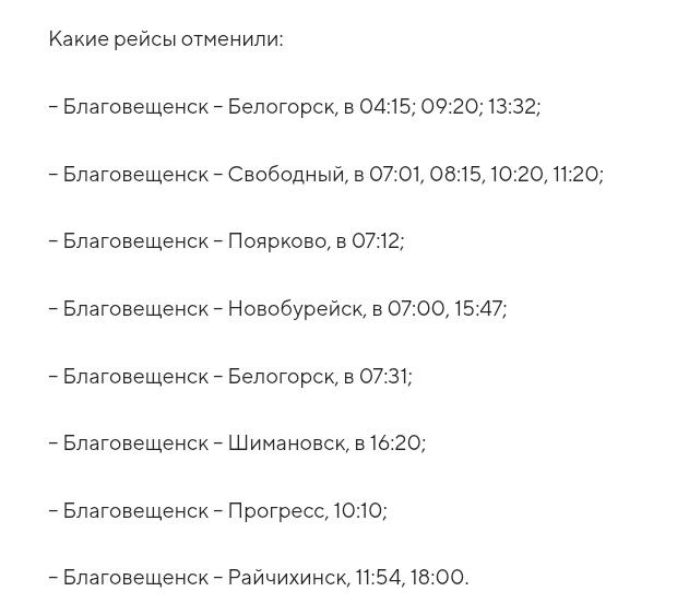 Между населенными пунктами Амурской области отменены автобусные пассажирские перевозки, сообщили в областном правительстве. Причиной отмены стал циклон, принесший в регион снегопад и, как следствие, – гололед на дорогах