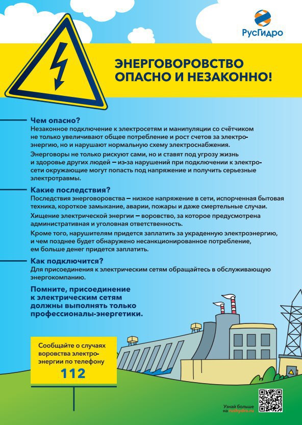Сообщить о фактах хищения электроэнергии можно по номеру 112.