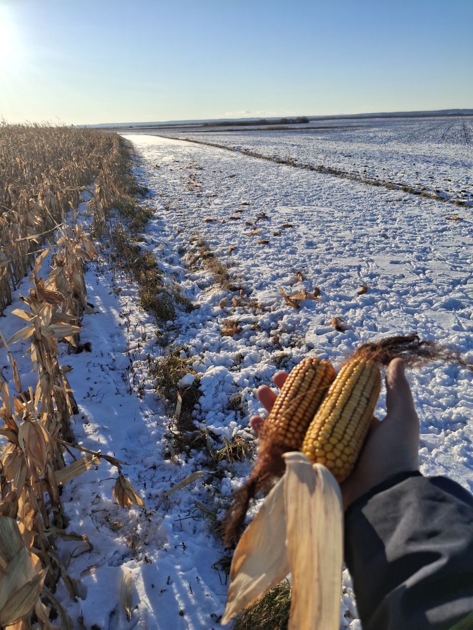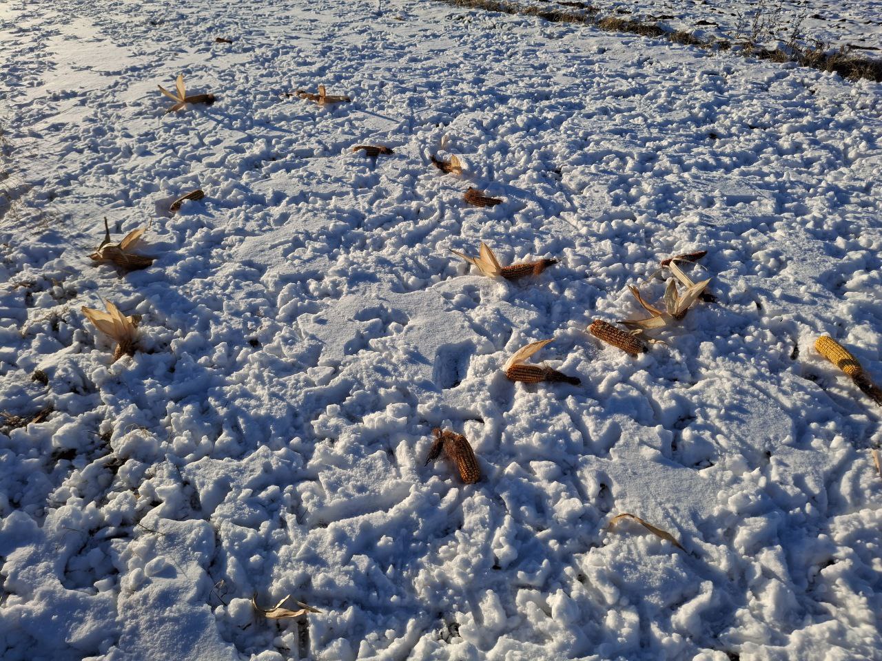 Сейчас пернатые обхаживают кукурузное поле и ждут, когда его начнут убирать комбайнами. Перед отлетом на зимовку они должны вдоволь накормиться. Японские журавли пытаются клевать висящие початки со стеблей, но это для птиц очень неудобно.