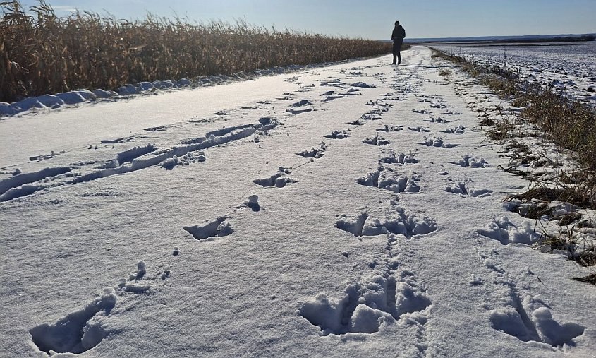 Словно стадо кабанов: в Приамурье японские журавли пытаются полакомиться кукурузой