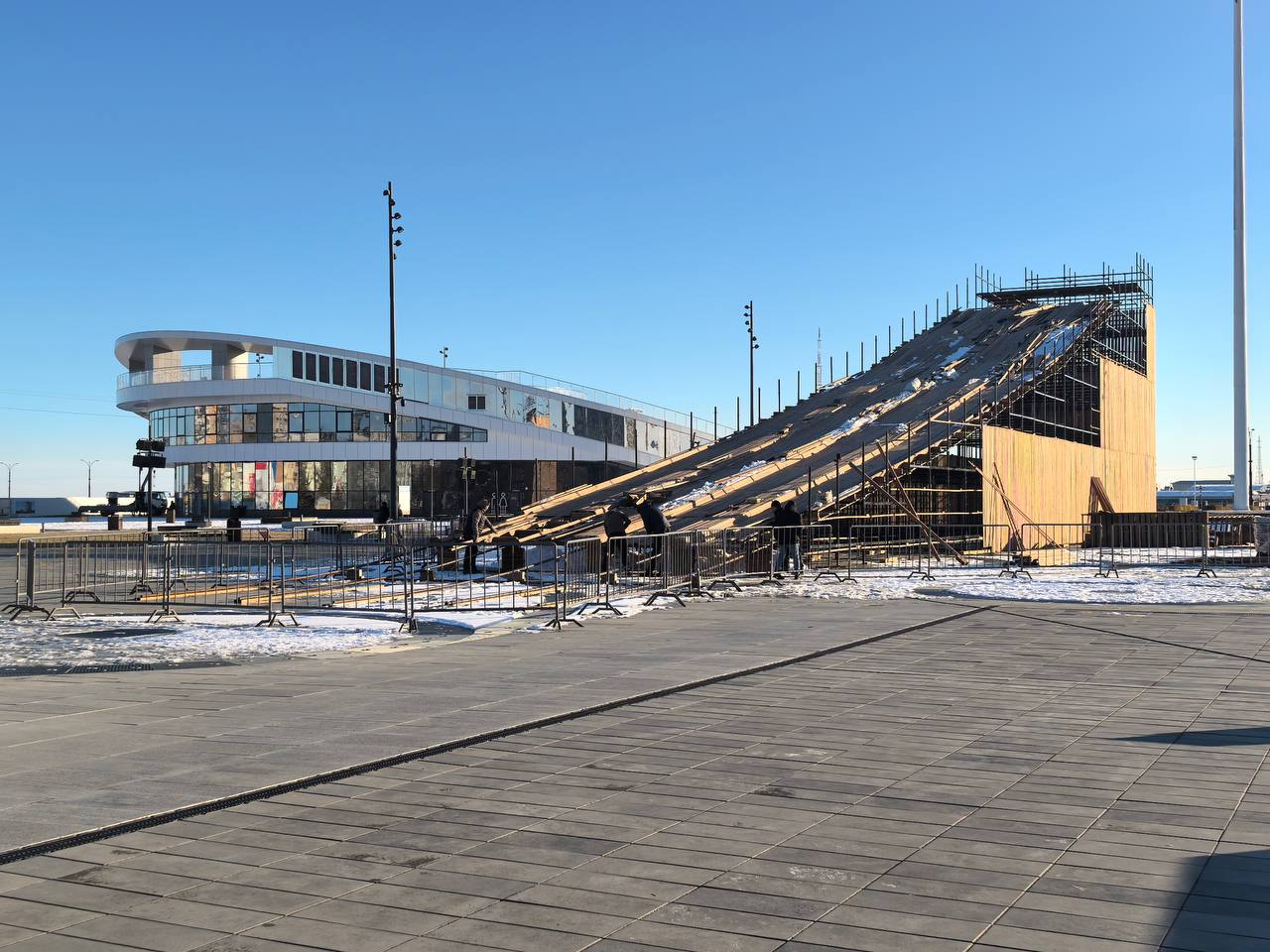 Тюбинговую горку продолжают собирать на площади в Благовещенске