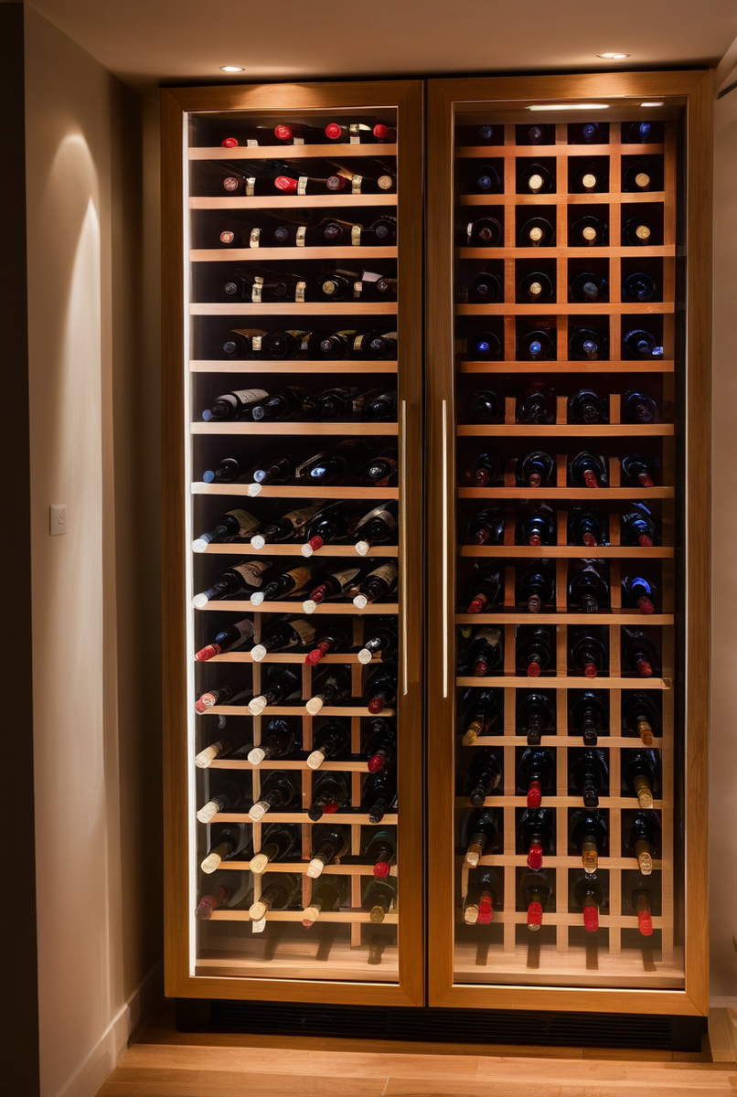 - Защита от света и вибрации: УФ-лучи ускоряют старение и меняют вкус вина. Поэтому двери винных шкафов часто изготавливаются из специального стекла. Избегание вибраций также важно, так как регулярные колебания могут негативно повлиять на седиментацию вина.
