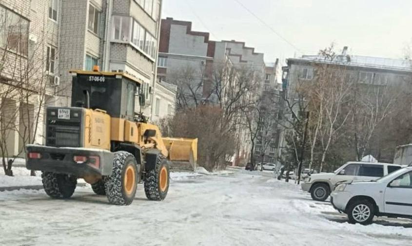 В Благовещенске продолжают расчищать улицы и дворы от снега.