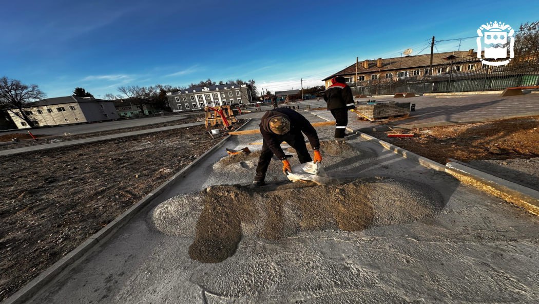 Подрядчик уложил бетонное основание, цементно-песчаное покрытие и тротуарную плитку. С наступлением холодов работы временно приостановлены. Завершить благоустройство планируют к августу 2026 года.
