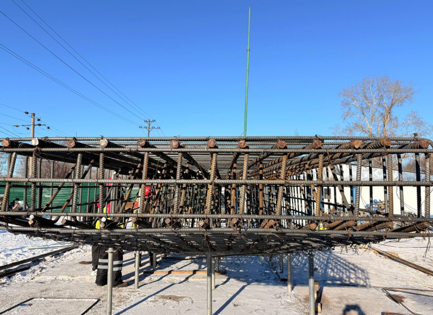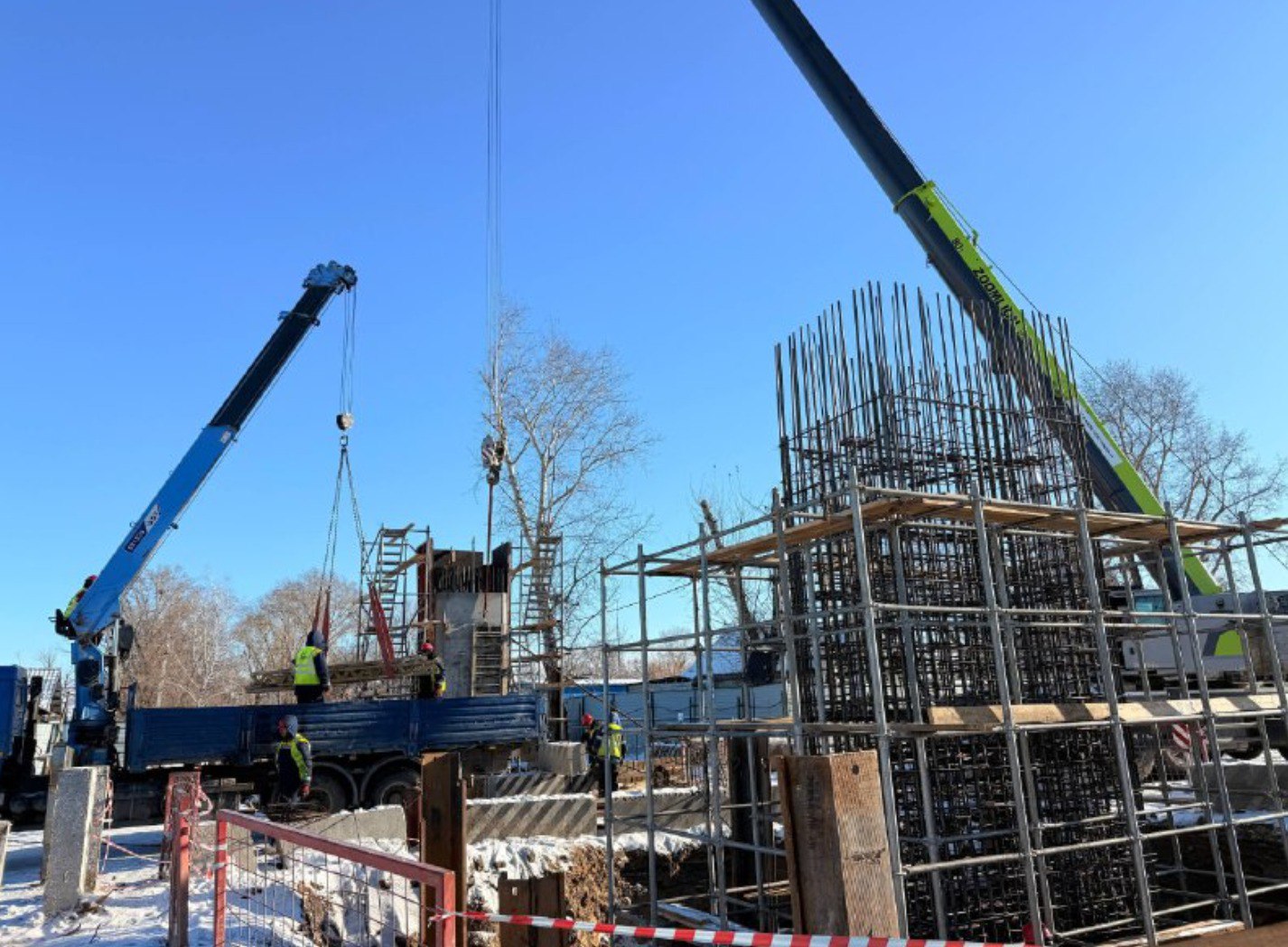 Техготовность составляет 26%. Основные усилия сосредоточены на завершении опор и монтаже металлического пролетного строения.
