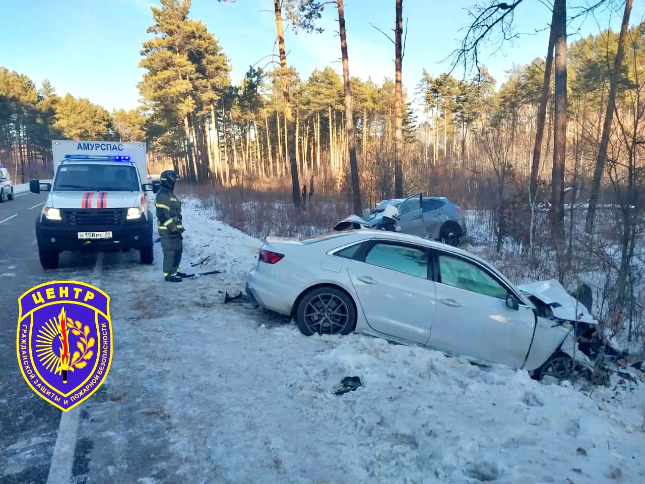 На трассе "Благовещенск — Свободный" столкнулись Audi A4 и Haval G7. В результатеДТП погиб водитель китайского кроссовера, два человека, находившиеся в Audi, пострадали — их доставили в больницу.
