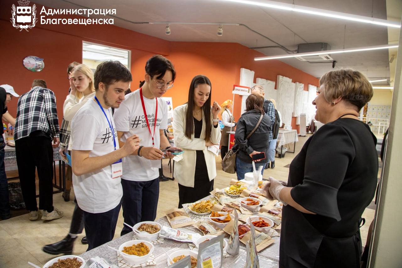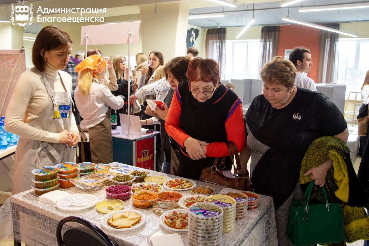 В холле организуют выставкудегустацию продукции под брендом «Покупайте Амурское». Гости форума смогут лично оценить качество и вкус товаров от местных производителей. На выставке представят молочную и рыбную продукцию, кондитерские изделия и другие товары.