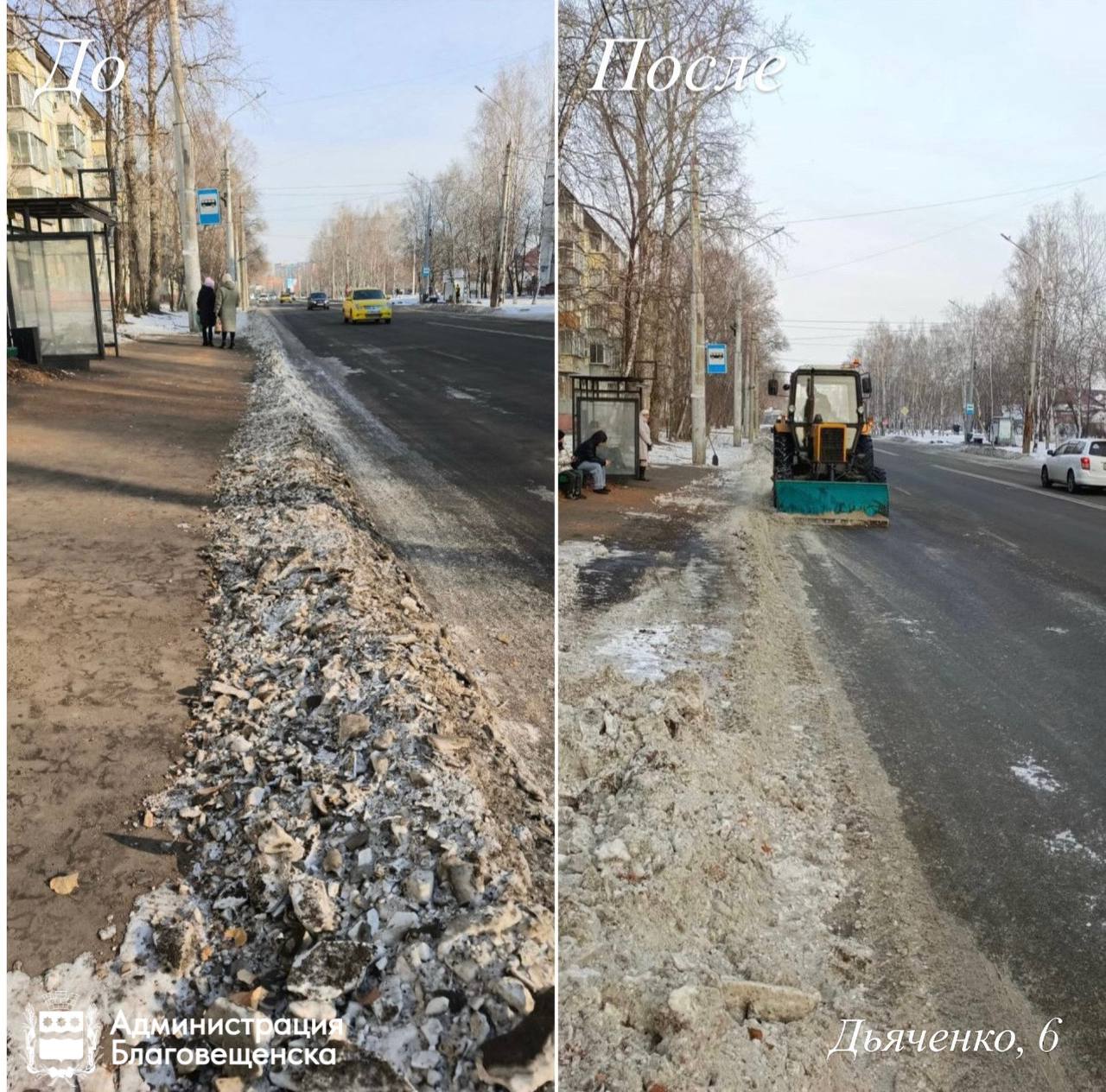 Еще одна жительница обратилась с просьбой расчистить автобусную остановку в районе Дьяченко, 6. Участок включили в план работ и убрали снежный вал около павильона.