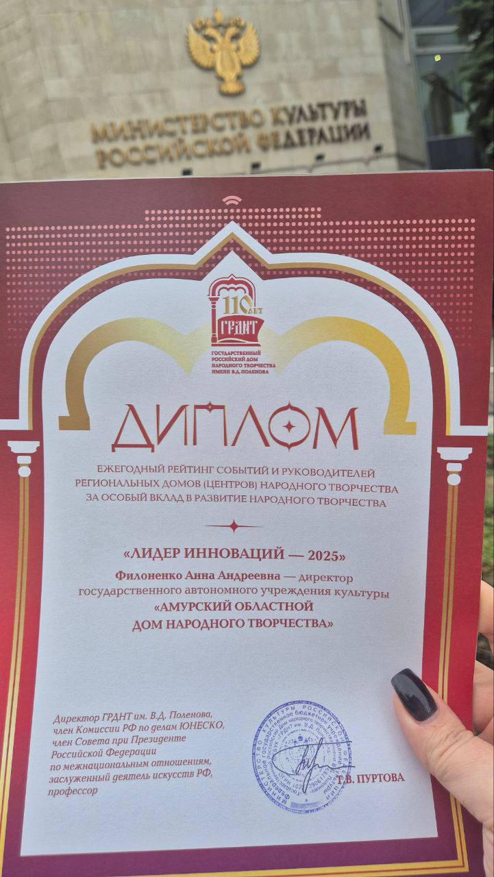 Анна Филоненко по итогам 2025 года стала «Лидером инноваций»! Награду она получила из рук директора ГРДНТ Тамары Пуртовой!