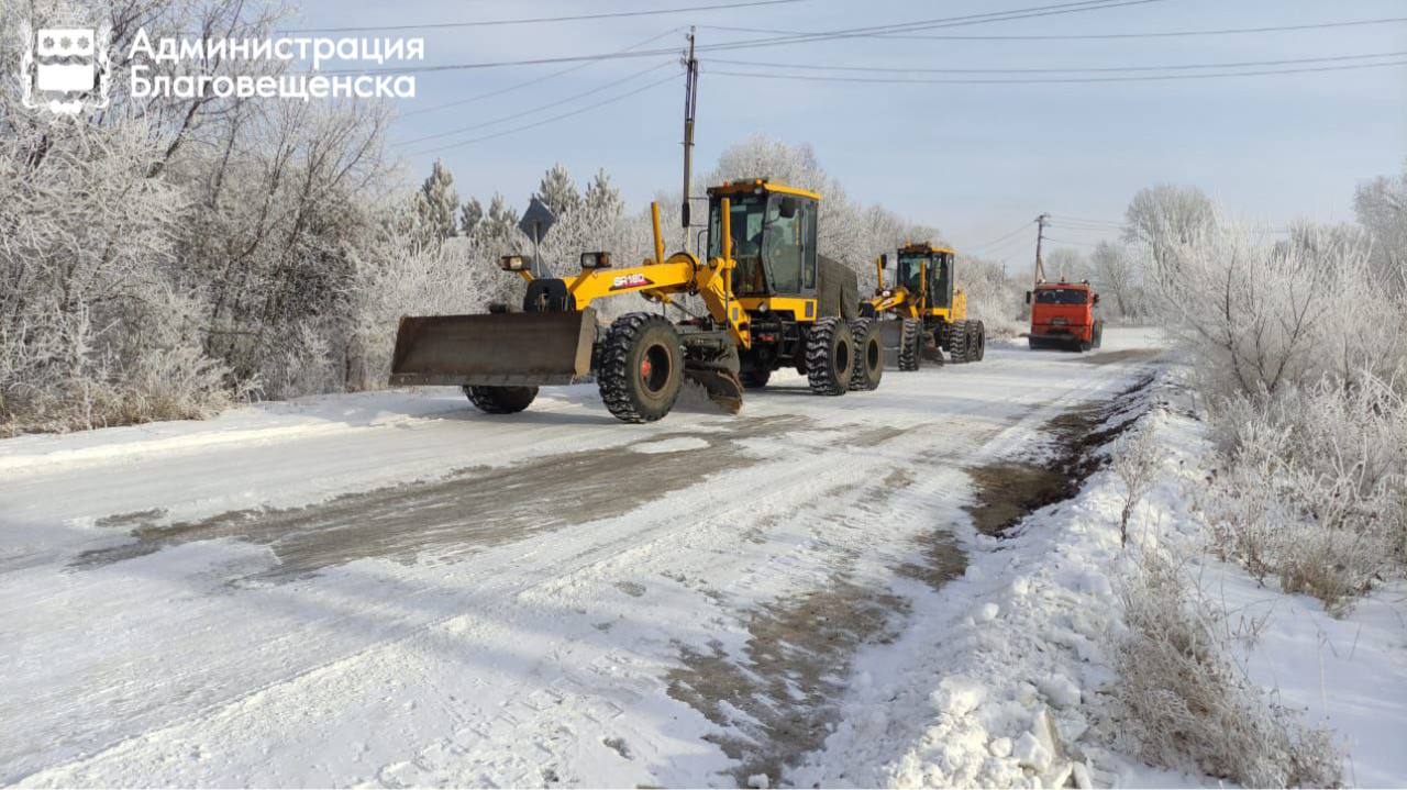 Сегодня рабочие и спецтехника ГСТК зашли на дороги в Белогорье, участки улиц Амурская, Горького, Северной, Чехова, Клубничной, Зейской, Игнатьевского шоссе, Василенко, Дьяченко, Институтской, Кантемирова, Студенческой, Василенко.