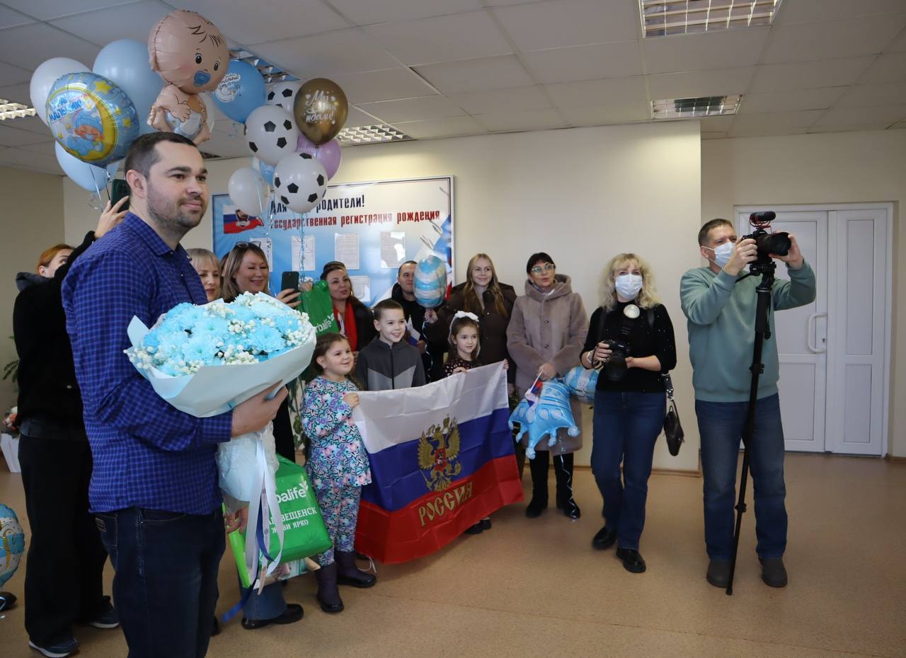 7 ноября на свет появились Дмитрий, Артем и Николай. Мальчики родились с хорошими показателями. На выписку младенцев нарядили в цвета триколора, а родственники встречали их с цветами.