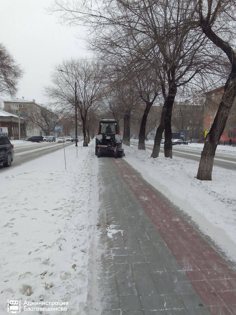 В Благовещенске с началом снегопада коммунальные службы перешли на усиленный режим работы