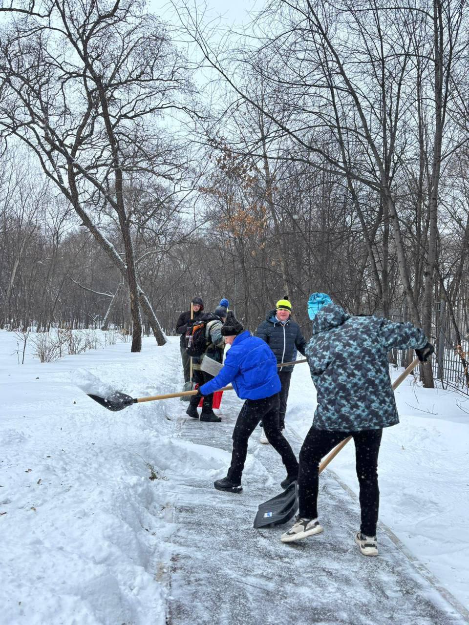 Прошёл снег – взяли лопаты: бегуны Благовещенска расчистили дорожку в Первомайском парке