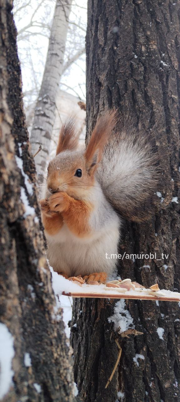 Этим морозным утром завтракаем вместе с рыжей красоткой