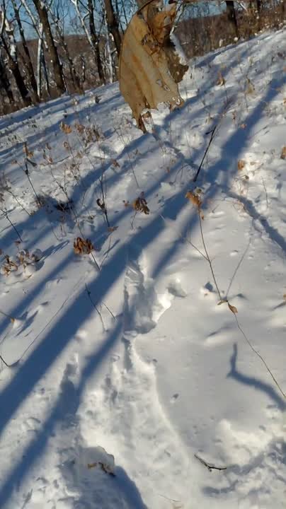 В Хинганском лесничестве рысь заметила двух пасущихся косуль, смогла подкрасться к одной на расстояние 8 метров и атаковать. Такую картину удалось восстановить леснику по следам на снегу 4 декабря.