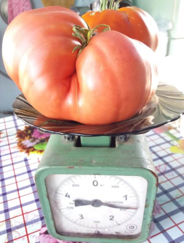 Этот проверенный временем сорт рекомендуется к выращиванию в теплицах, так как достигает высоты до двух метров. Однако, при правильных условиях, его можно смело сажать и в открытый грунт. Устойчив к непогоде, даже в обычных грядках Гигант Новикова радует огородников крупными плодов, достигающими 700 граммов. Основные плоды варьируются от 400 до 600 граммов. Высокий урожай — до 5-6 килограммов с куста, хотя в теплице можно добиться и большей отдачи. Мясистая мякоть отличается хорошим вкусом с легкой кислинкой.