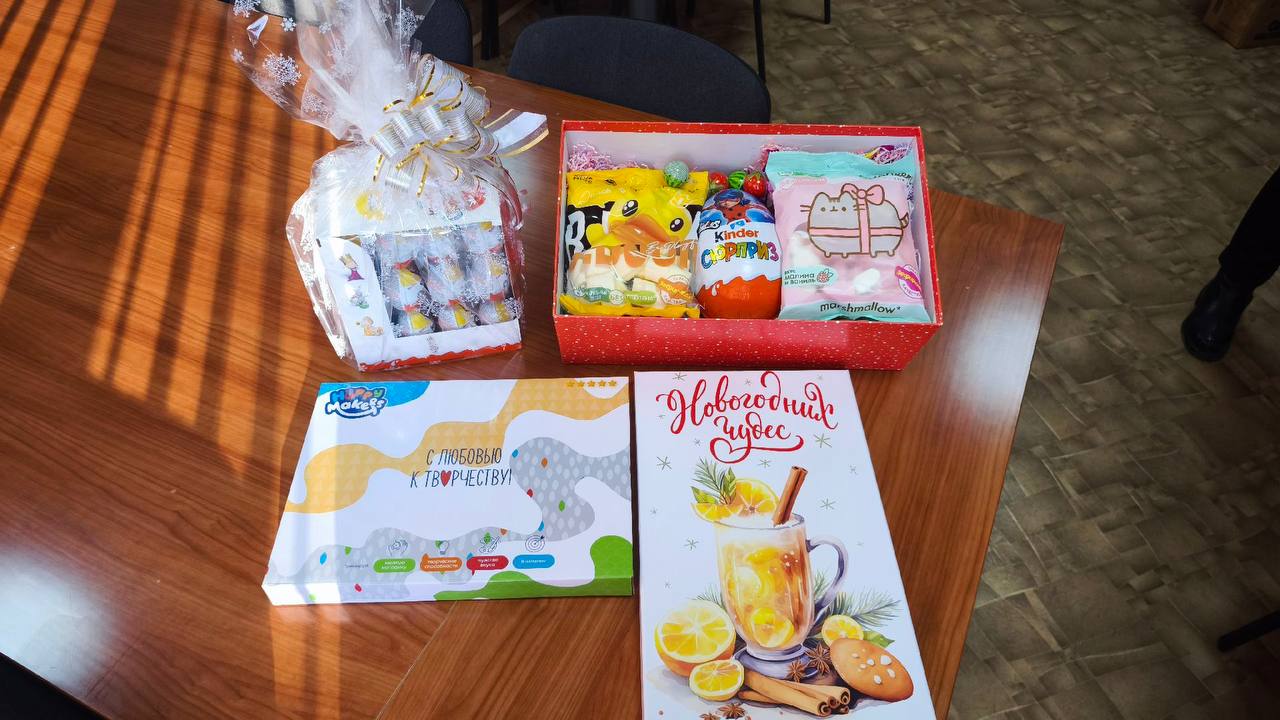 В рамках инициативы коллектив собрал и передал детям сладкие подарки, а также наборы для детского творчества «Эбру».