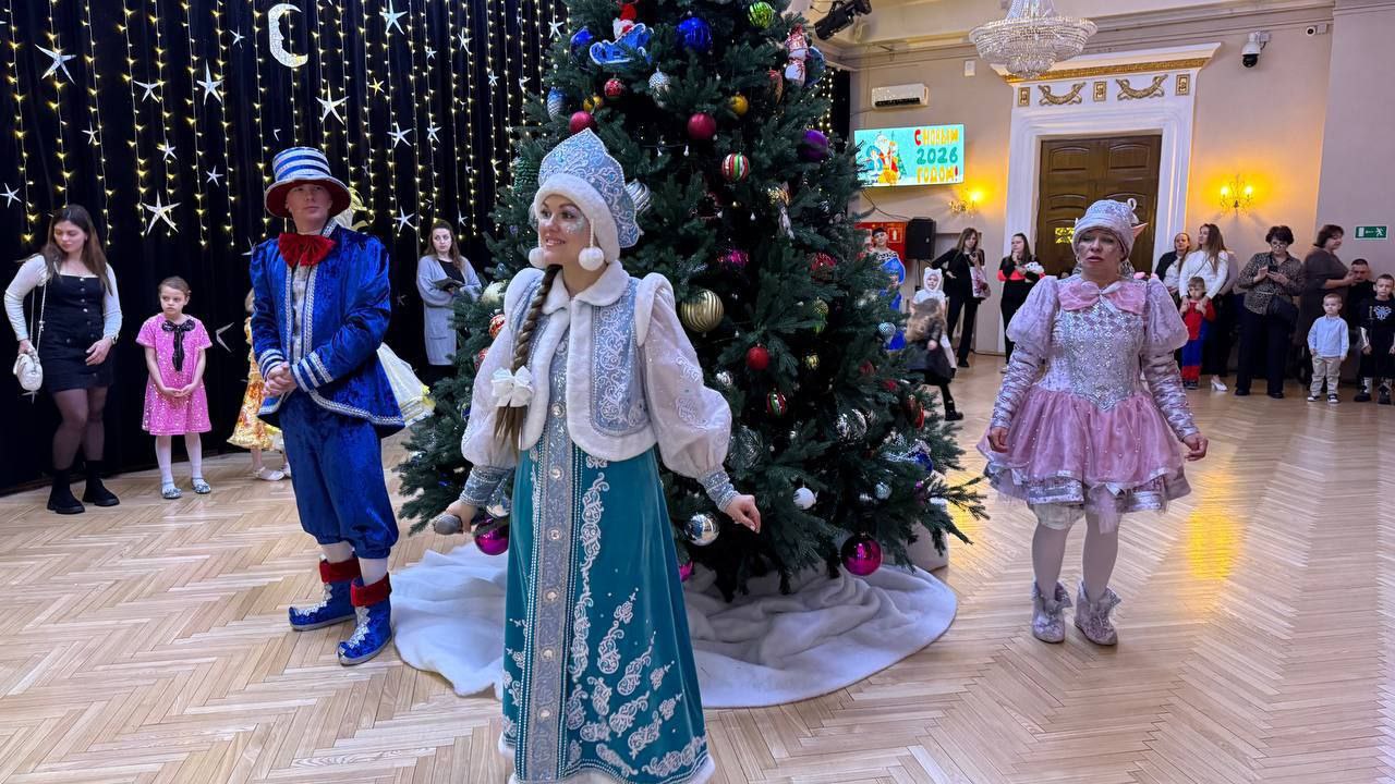 Для юных гостей в театре подготовили спектакль "Новогодняя история" и интерактивную программу с хороводами, танцами и песнями, конкурсами, подарками.
