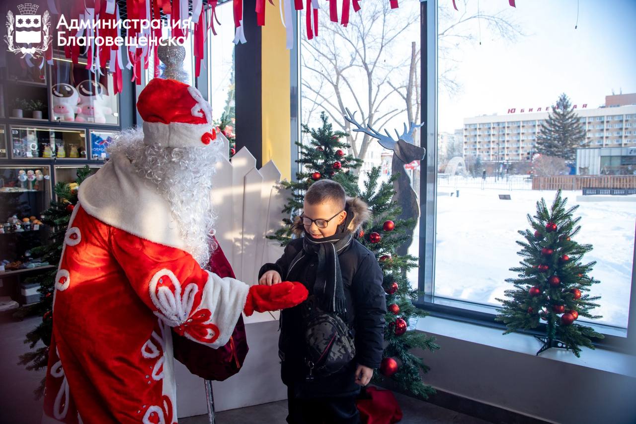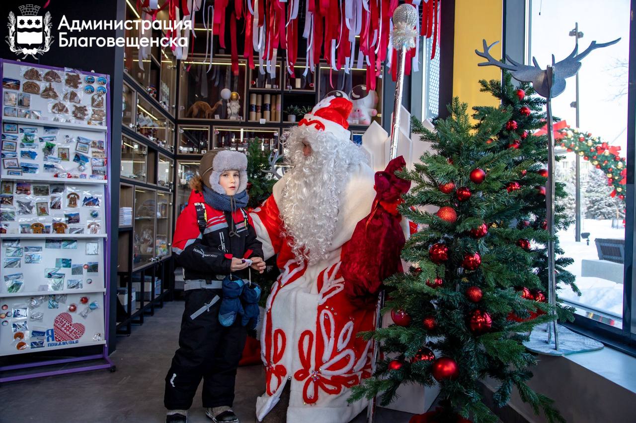 Резиденция Деда Мороза начала свою работу на центральной площади Благовещенска. Только в первый день её посетили больше сотни ребят и их родителей.