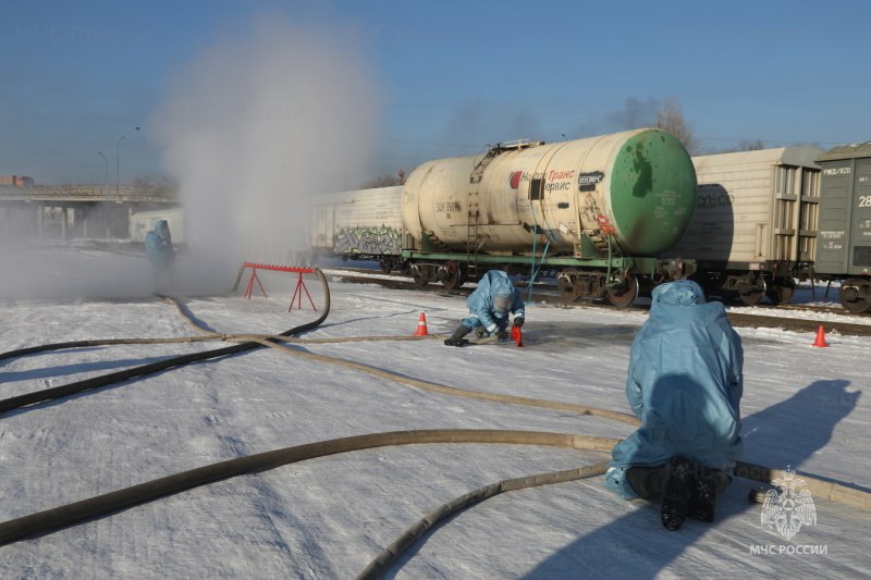 восстановили целостность цистерны и провели осаждение опасного облака.