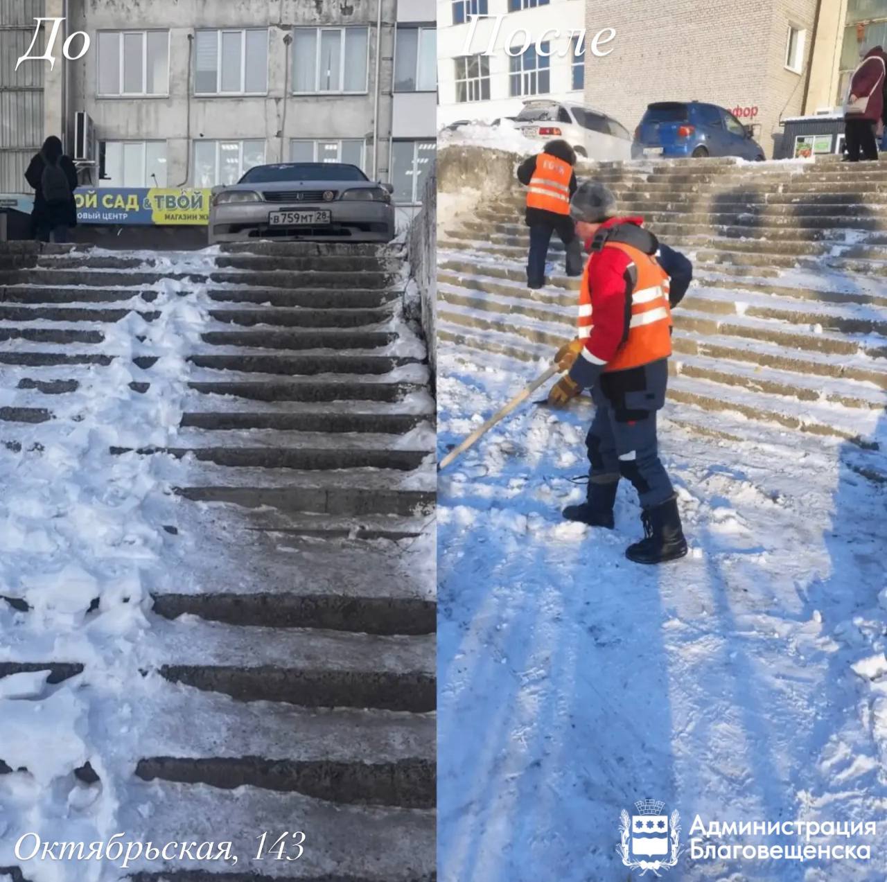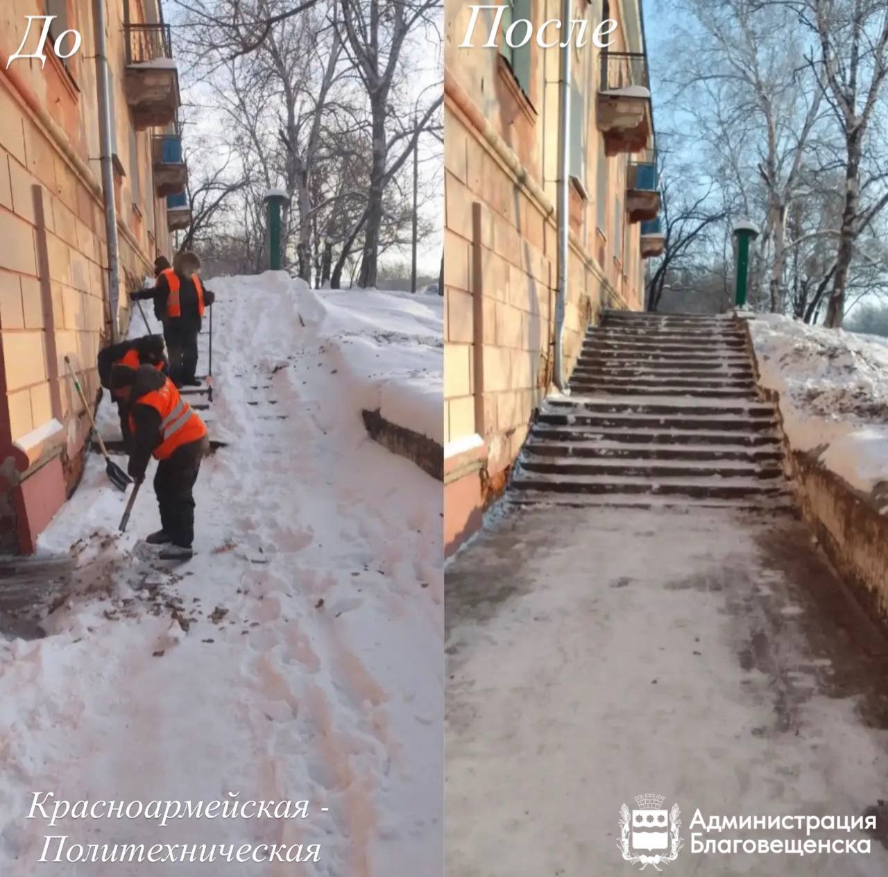 По заявкам жителей: в Благовещенске от снега очистили десятки территорий