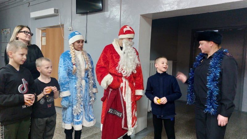 Полицейский Дед Мороз и Снегурочка устроили праздник для воспитанников центра «Доверие»