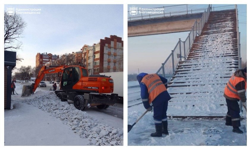 25 рабочих, 30 единиц техники: в Благовещенске снег убирают в том числе по заявкам местных жителей