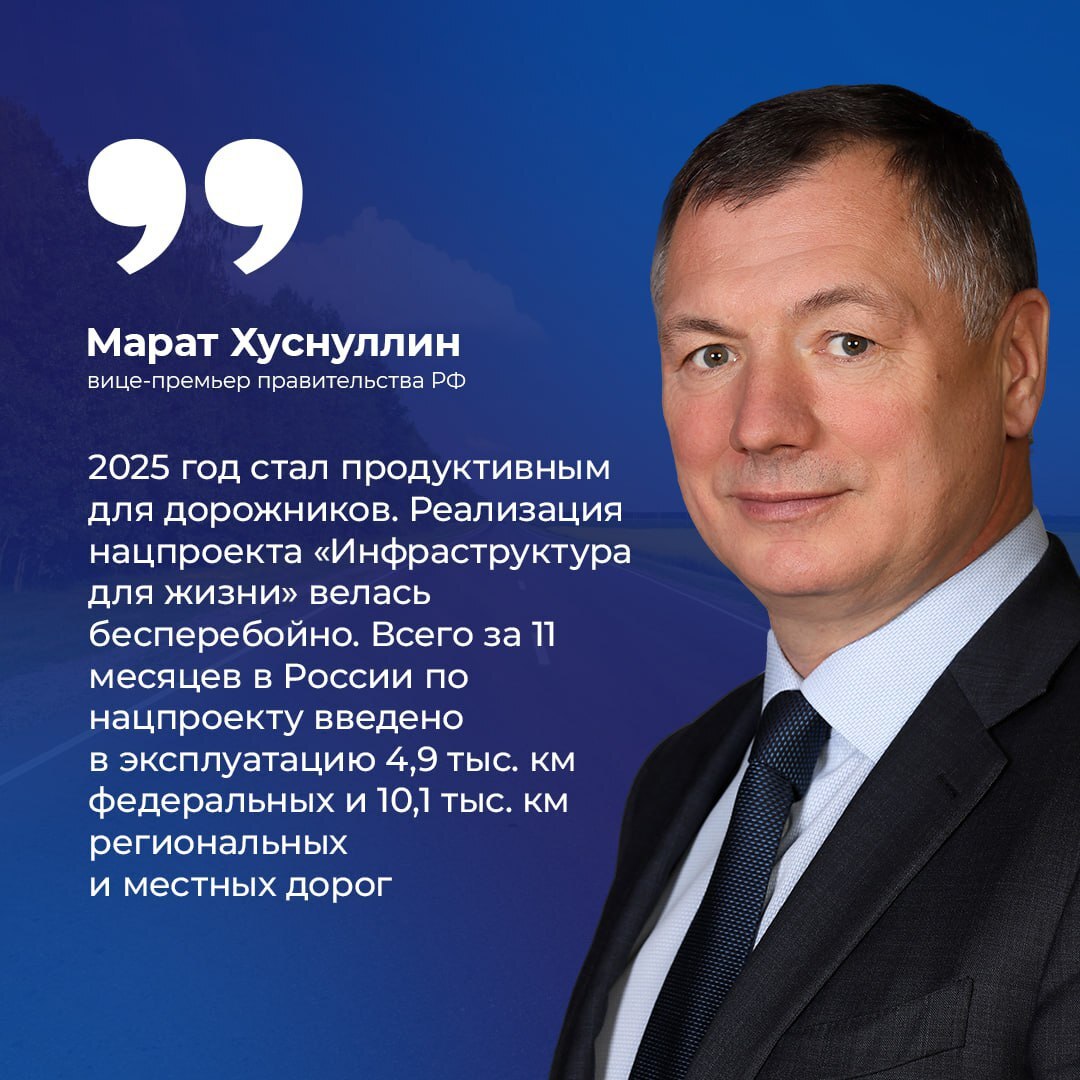 Об этом рассказал зампред правительства РФ Марат Хуснуллин, подводя итоги дорожной кампании 2025 года.