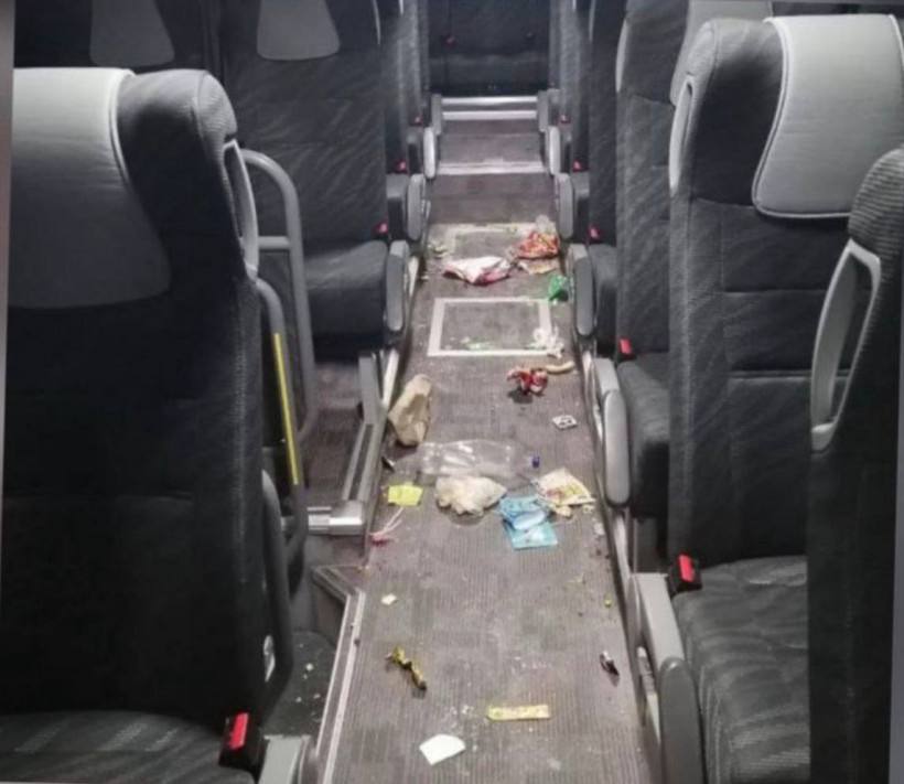 В салоне транспорта, арендованного для экскурсии в Благовещенск, школьники оставили мусор, не отреагировав на замечания водителя. Это несмотря на то, что их сопровождали классный руководитель и один из родителей.