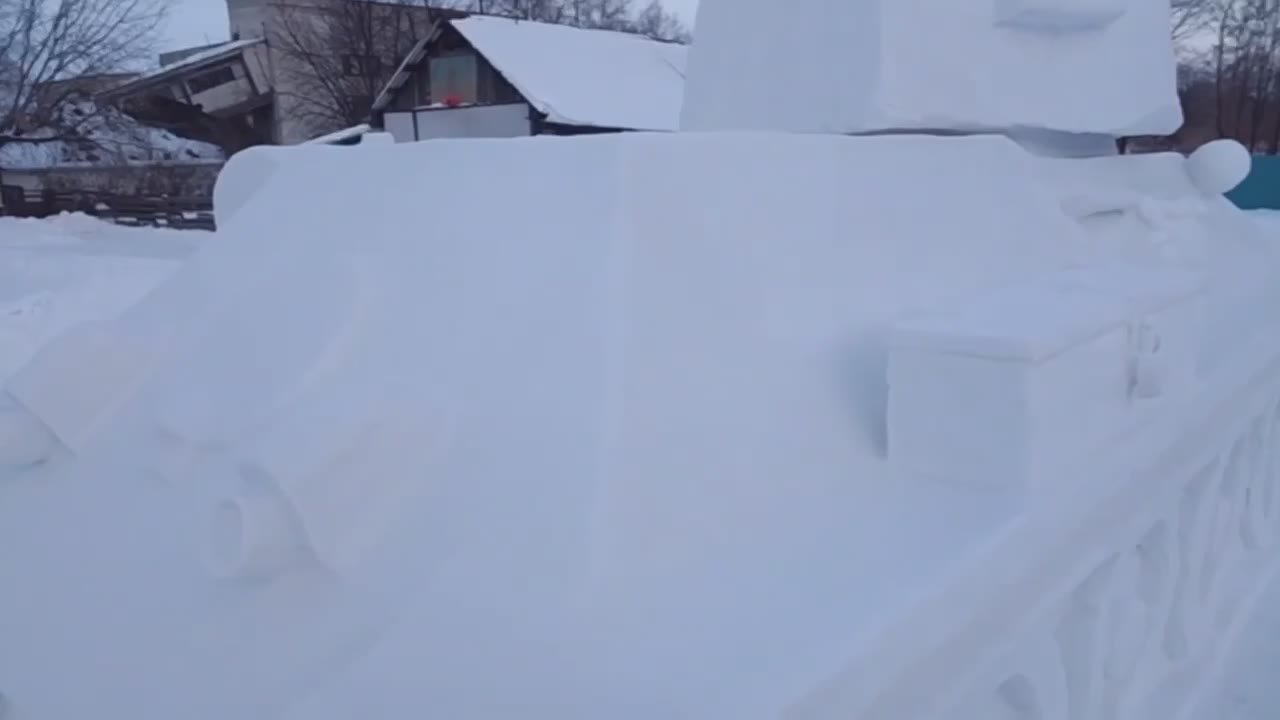 Житель амурского села Константиновка вместе с внуком создали точную снежную копию легендарного Т-34