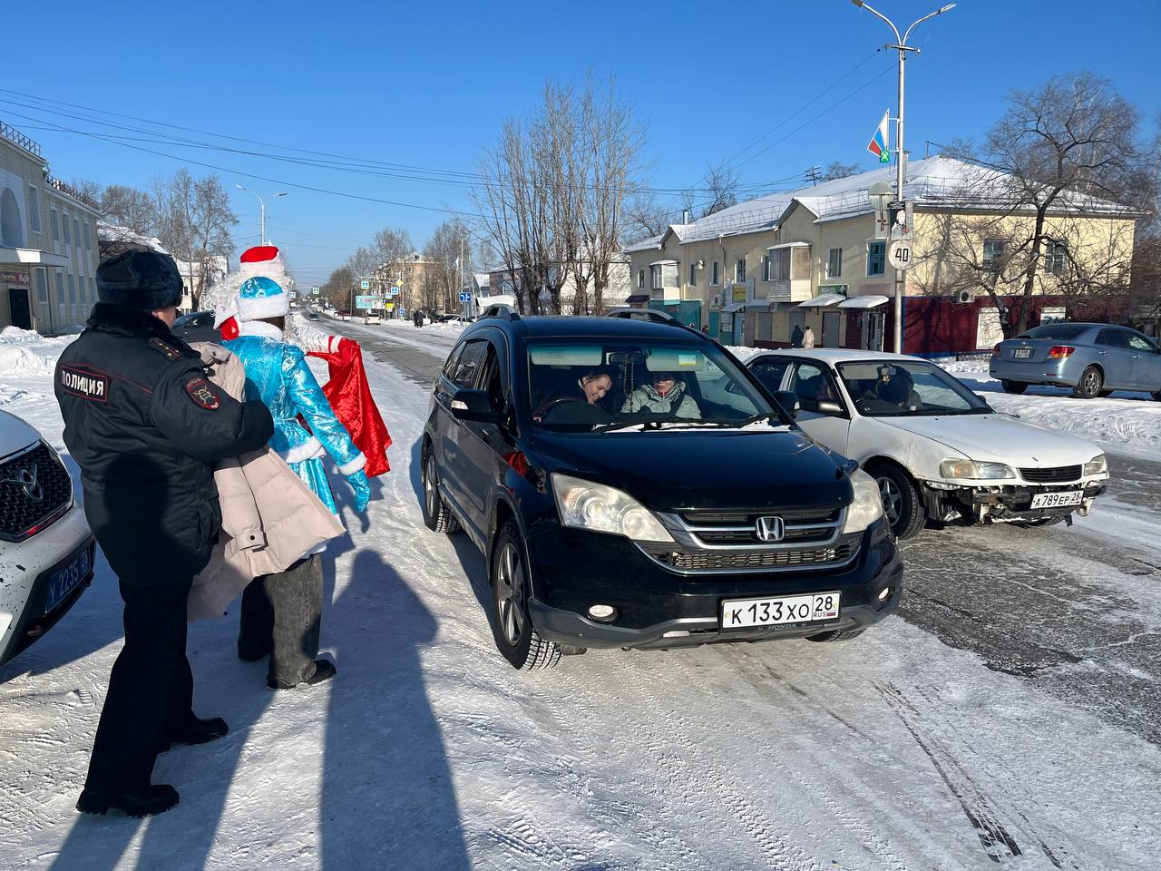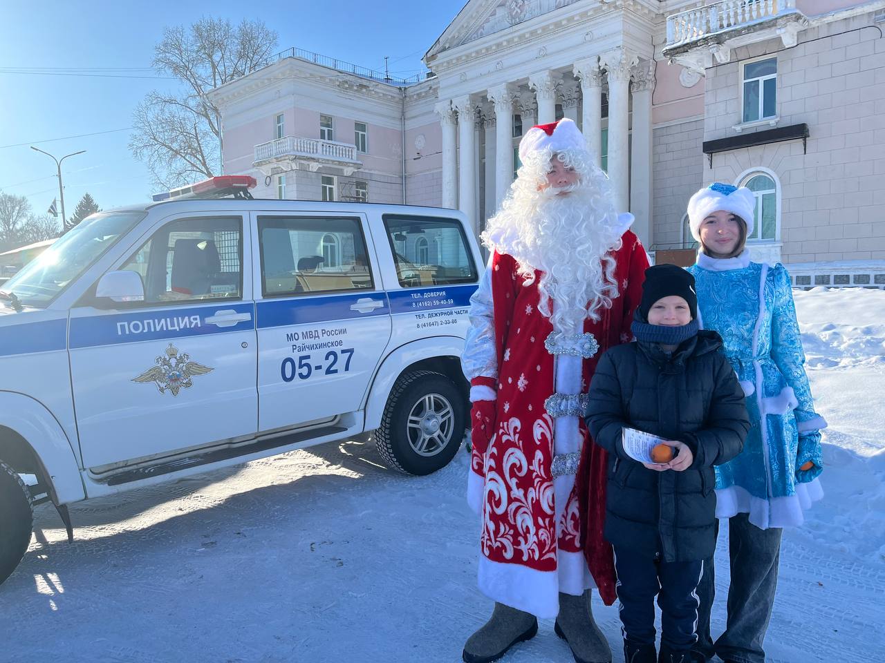 Сотрудники отделения Госавтоинспекции межмуниципального отдела МВД России «Райчихинское» провели необычную профилактическую акцию «Полицейский Дед Мороз». Её цель — напомнить участникам дорожного движения о важности безопасности в праздничные дни в позитивной и запоминающейся форме.