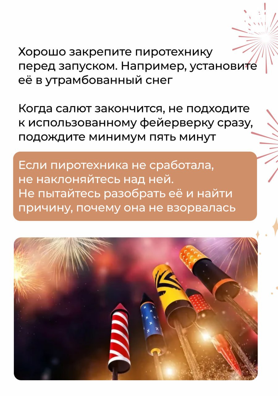 Запуск фейерверков требует особого внимания и соблюдения мер предосторожности. В карточках собрали главные правила безопасной эксплуатации пиротехники.