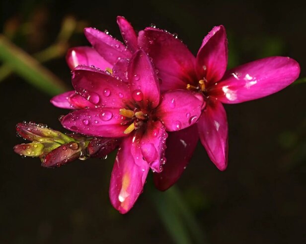 Иксия — это многолетнее клубнелуковичное растение из семейства Ирисовых. Высота иксии варьируется от 40 до 60 см, а ее нежные звездчатые цветки расцветают с июня по июль. Каждый цветок распускается только в солнечную погоду, демонстрируя свои изящные грациозные соцветия. Однако их жизнь недолговечна — всего около трех недель, а в пасмурные дни и ночью они закрываются, словно стесняются.