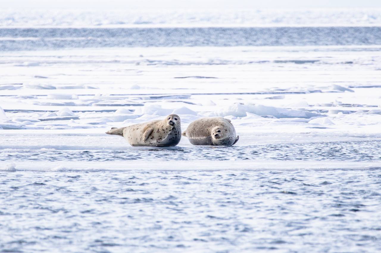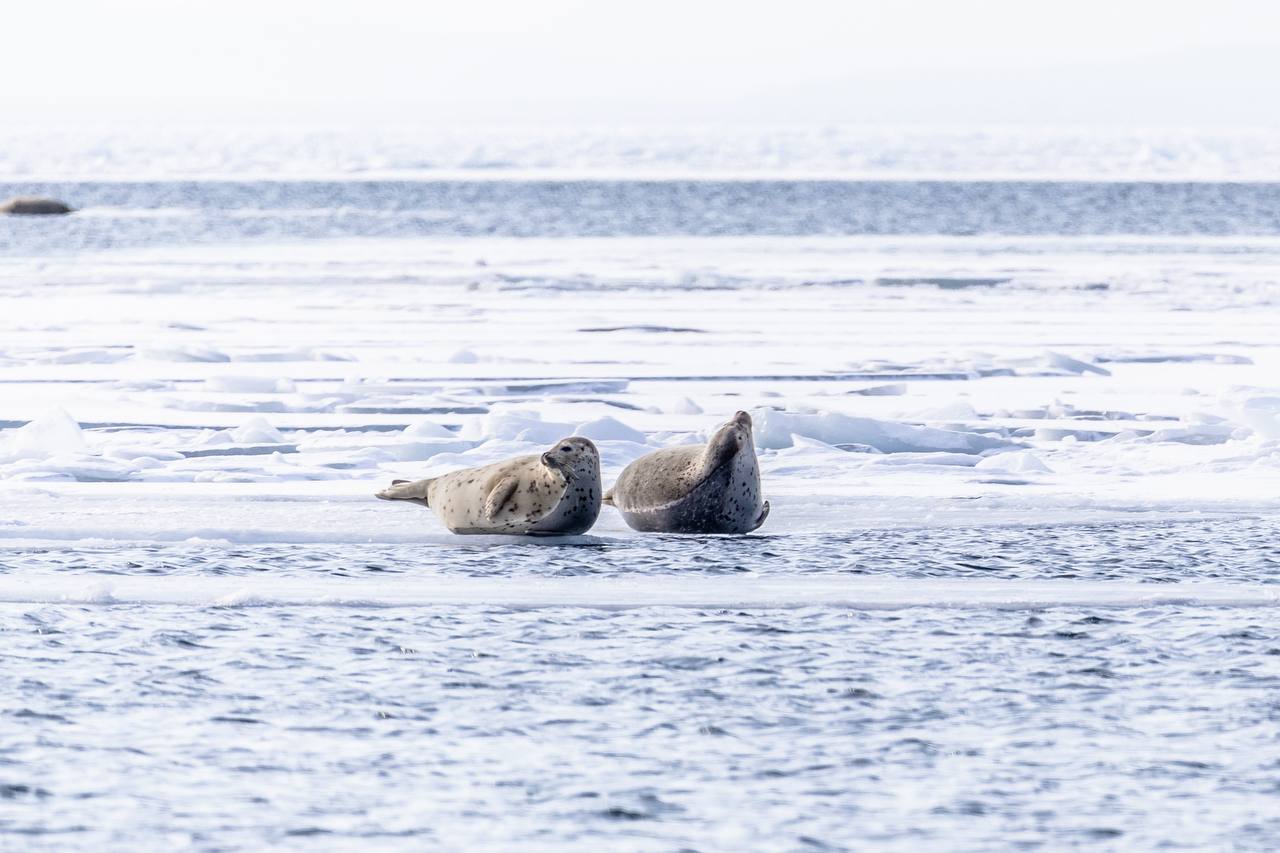 Пятнистые гости на льду. В Амурском заливе появились ларги с малышами