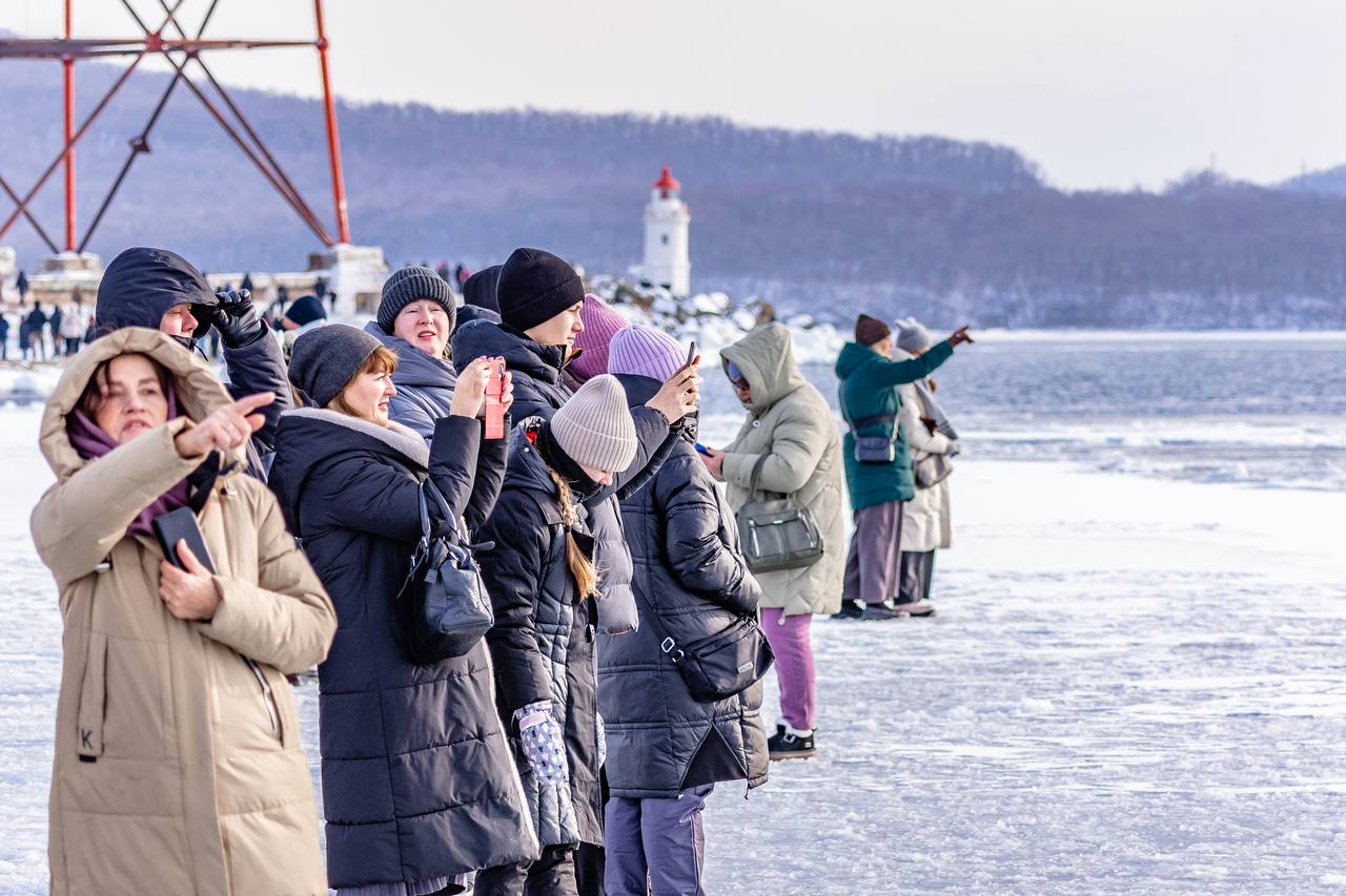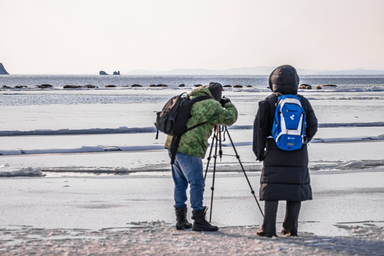 В Амурском заливе появились ларги с малышами. Полюбоваться нерпами можно, прогулявшись к Токаревской кошке.