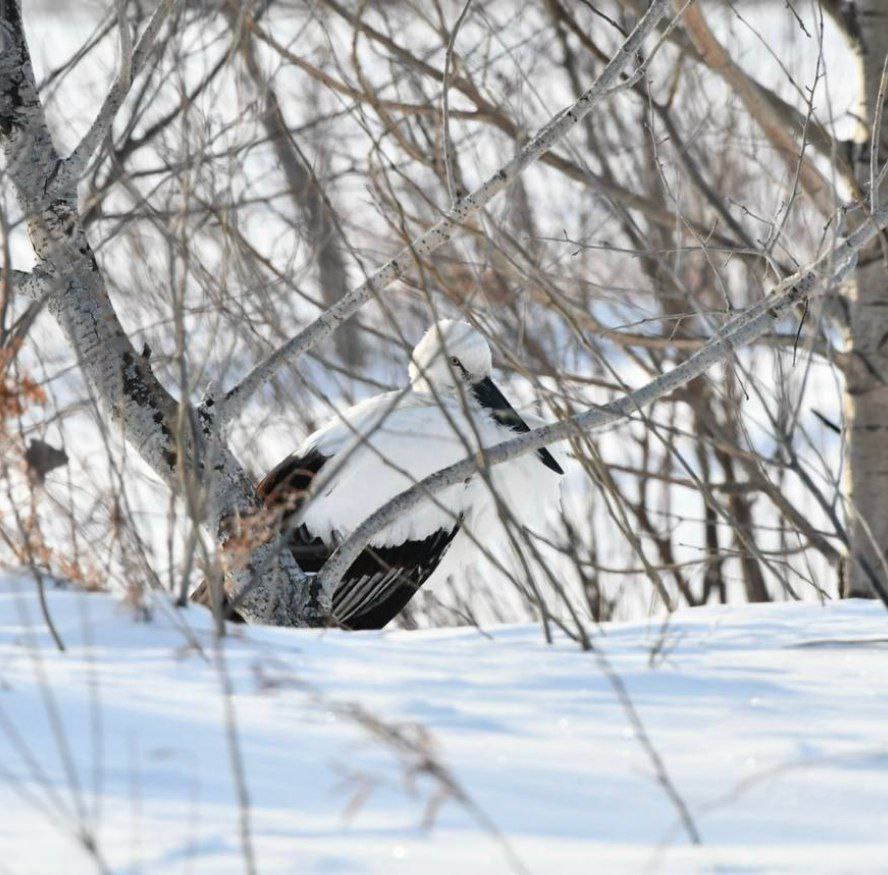 В Константиновском районе Амурской области на заснеженных полях остался зимовать молодой дальневосточный аист. Как отмечает амурский орнитолог Антон Сасин, судя по особенностям строения, этой осенью птице предстояло совершить свой первый в жизни перелет на зимовку в теплые районы Китая, однако миграция по каким-то причинам не состоялась.