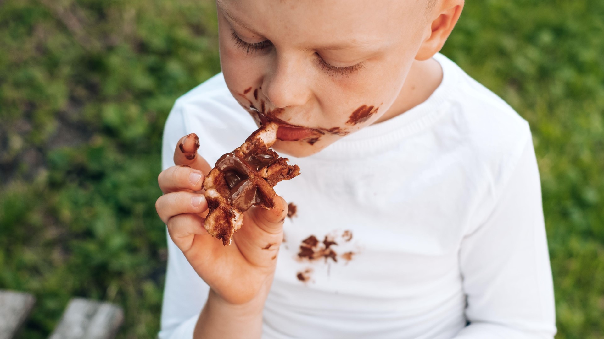 Шоколадные пятна отлично удаляет пена для бритья. Подойдет любое средство, даже недорогое. Нанесите на губку немного пены и потрите пятно. Оставьте испачканную вещь на 15 минут в покое.