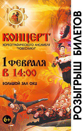 Дарим ДВА билета (будет ДВА ПОБЕДИТЕЛЯ, каждый получит один билет) на концерт хореографического ансамбля "Ровесники" (6+), концерт состоится 1 февраля в ОКЦ в 14:00.