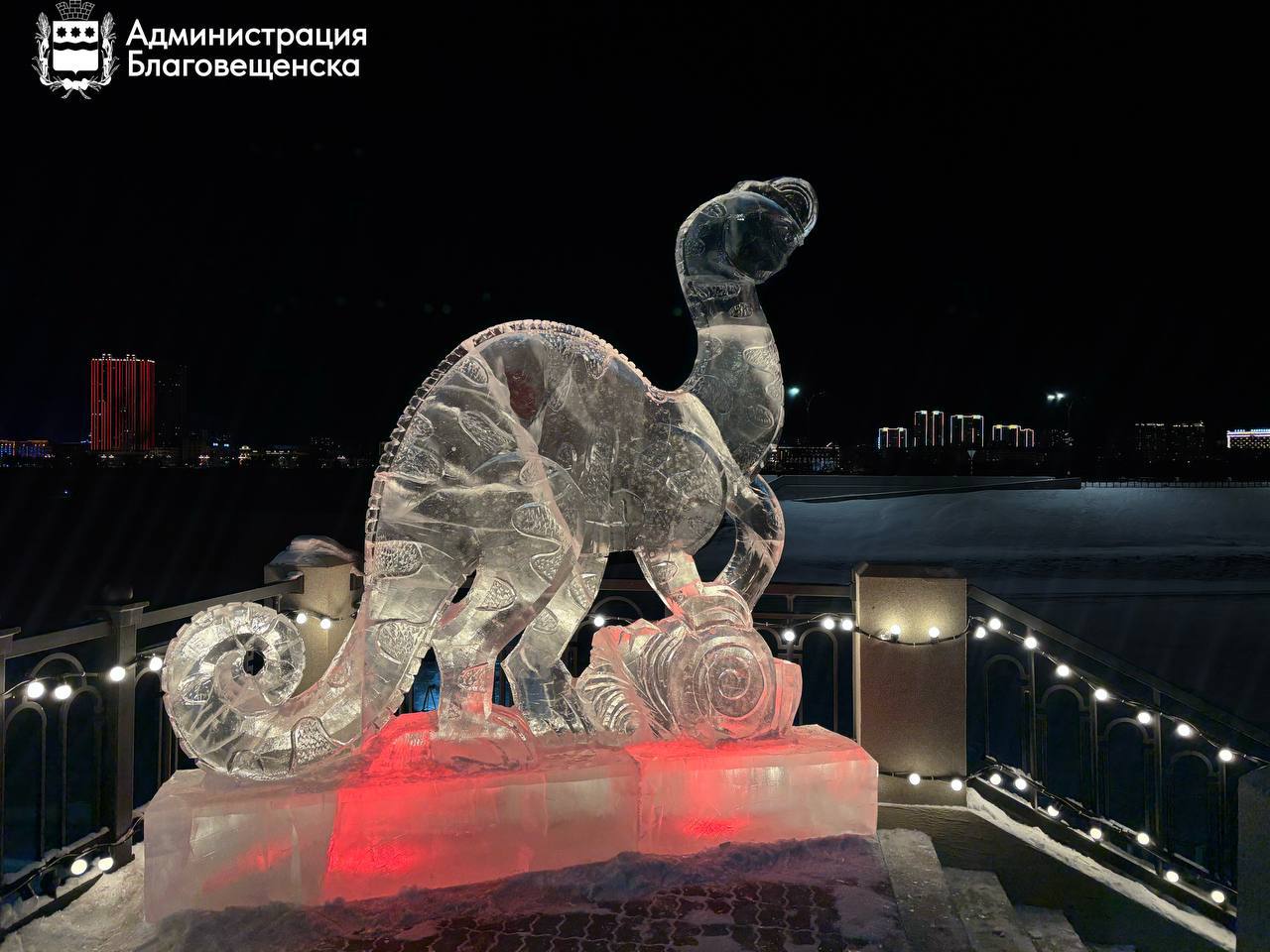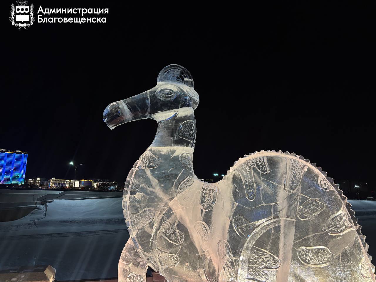 Амурозавры на Крещении: у пляжа «Пограничный» в Благовещенске появилась необычная ледяная композиция