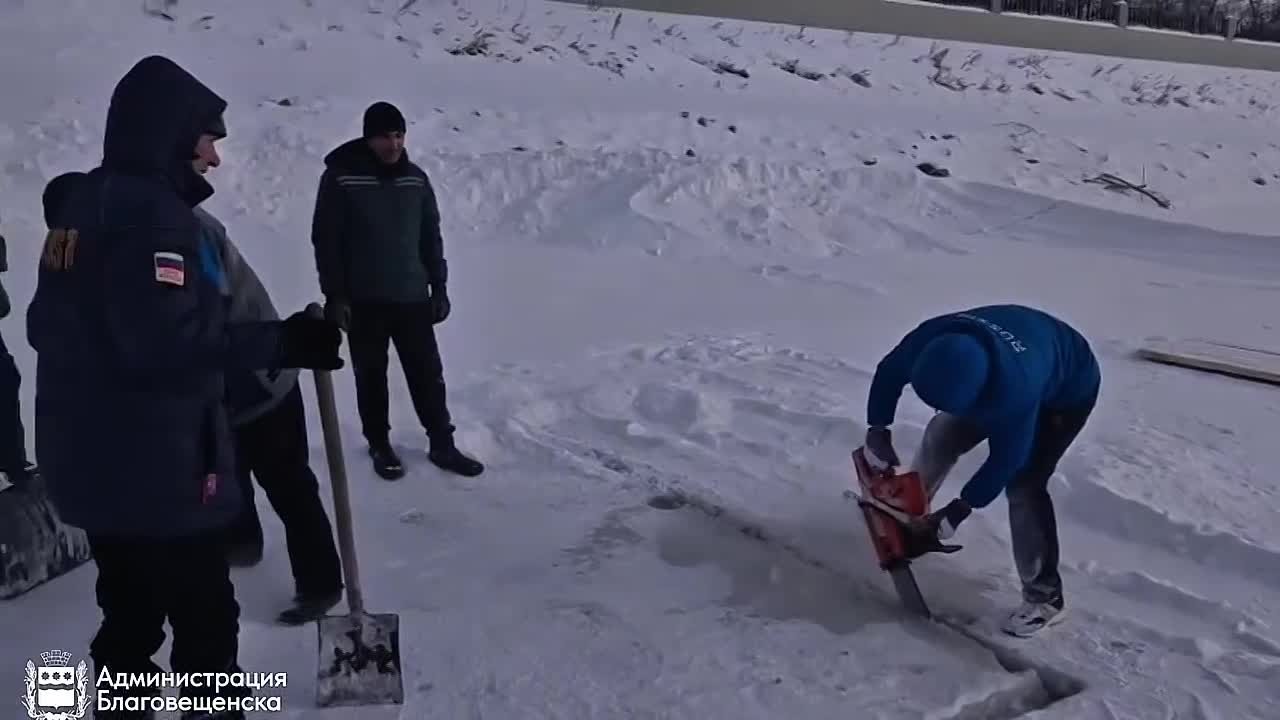 В Благовещенске завершили подготовку площадки для крещенских купаний на пляже Пограничный. Здесь выпилили купель размером 24метра. Сотрудники ГСТК сделали деревянные сходни для спуска в прорубь. Уложили настилы вокруг купели так, чтобы избежать скопления людей — купающиеся будут подходить с одной стороны, а уходить в другую.