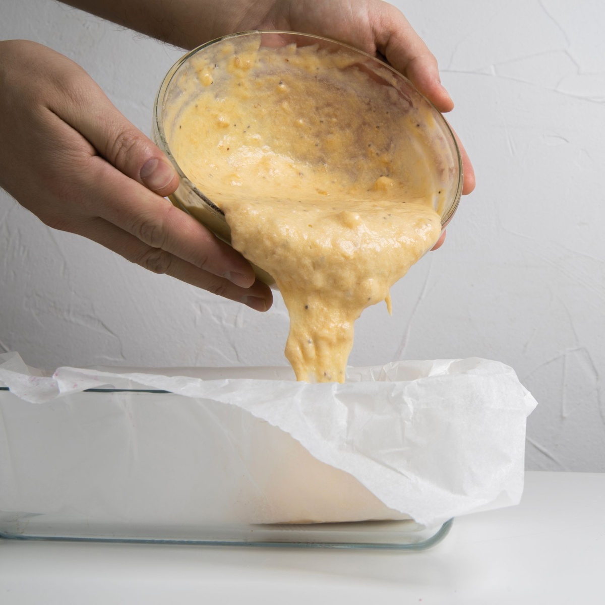 После этого поместите форму в предварительно разогретую до 170 градусов духовку и запекайте в течение 40-50 минут. Дайте запеканке немного остыть, чтобы она сохранила свою форму при нарезке.