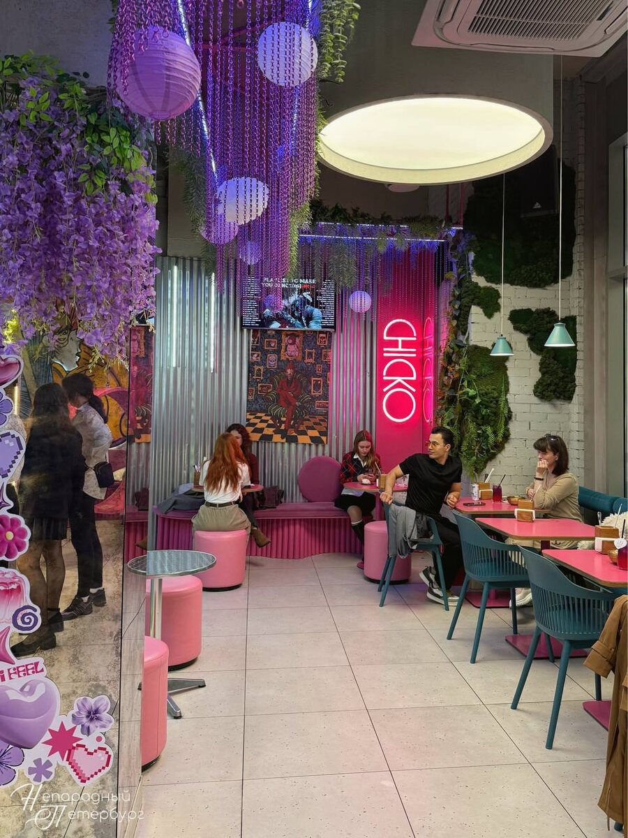Chicko - это не просто заведение с корейским стритфудом, а настоящий уголок Кореи, где каждый элемент создает уникальную атмосферу. Яркий интерьер, неоновые вывески и стильные граффити на стенах переносят посетителей в сердце корейской культуры.