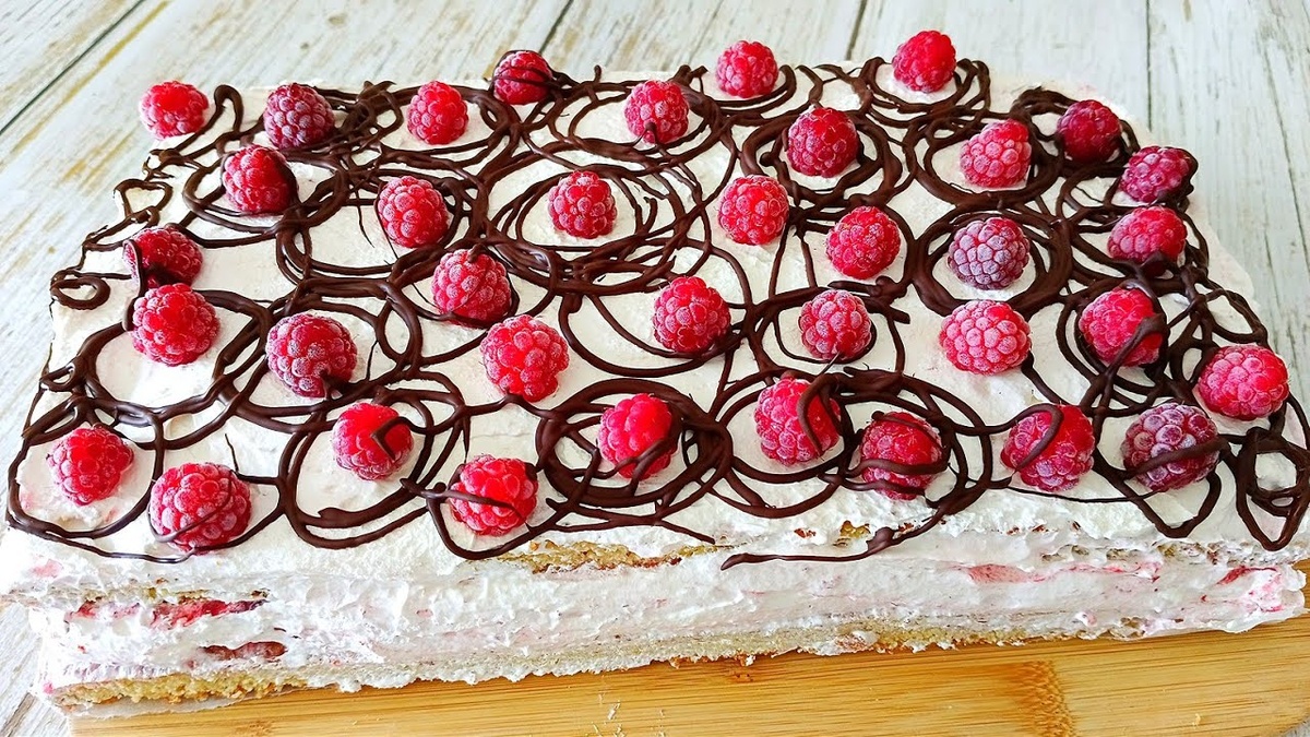 Перед подачей торт можно украсить малиной и тертым шоколадом – идеальное завершение для вкусного десерта без угрызений совести.