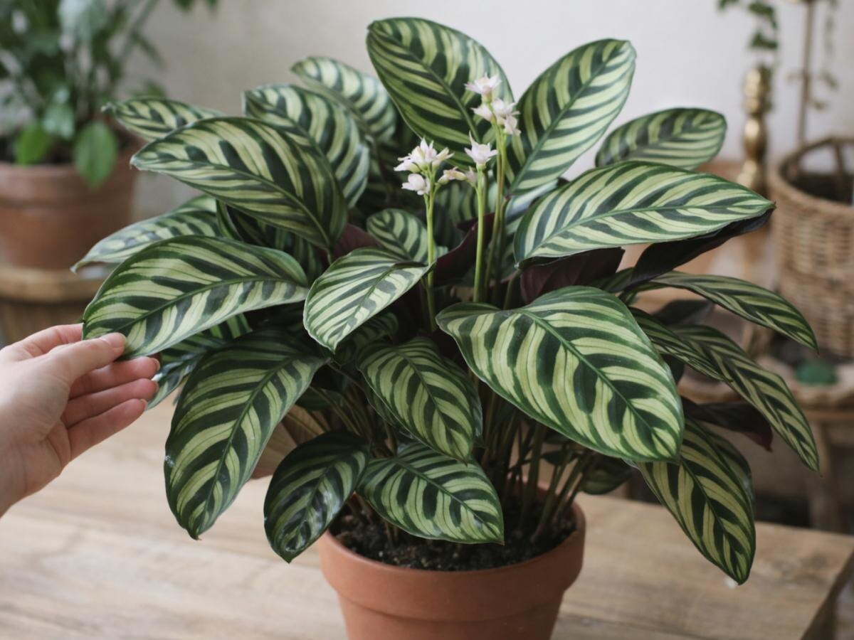 Такой подход позволяет сохранить декоративность калатеи и подчеркнуть её характерный рисунок листьев в течение долгого времени.