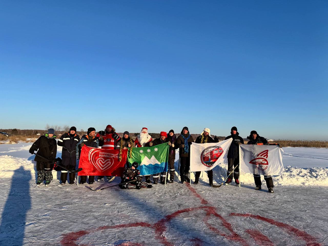 Не обошлось и без зимних активностей. Художники расчистили рядом с открыткой небольшой каток. На коньках катались и дети, и взрослые. Даже поиграли в хоккей.