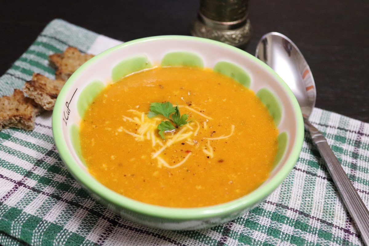 Суть рецепта проста: за полчаса на плите рождается густое томатное пюре с мягким сливочным акцентом и тремя штрихами сыра сверху. Выбирайте спелые помидоры — их вкус заметно насыщает бульон.