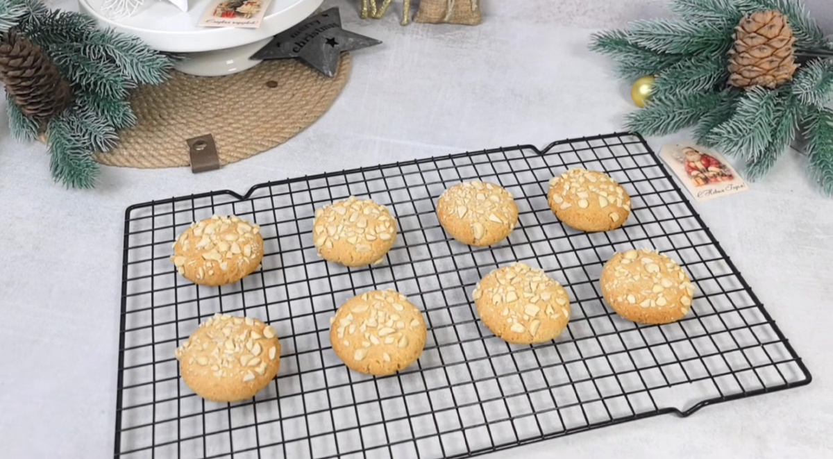 Основу составляет смесь ореховой и рисовой муки с добавлением арахиса и кокосового масла. Важный штрих — гасящий лимонный сок, который соединяет ингредиенты и задаёт лёгкую кислинку, гармонирующую с солёной поверхностью печенья.