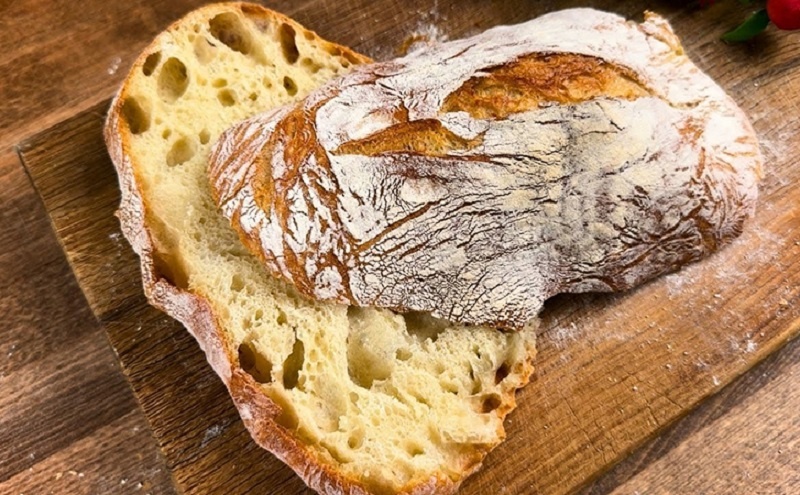 Техника без замеса использует длительные, но спокойные паузы: дрожжи действуют медленно, мука равномерно набирает влагу, а аккуратные складывания формируют структуру клейковины. В результате — выраженный аромат, крупные поры в мякише и тонкая хрустящая корочка, которую обычно ждут от настоящего итальянского хлеба.